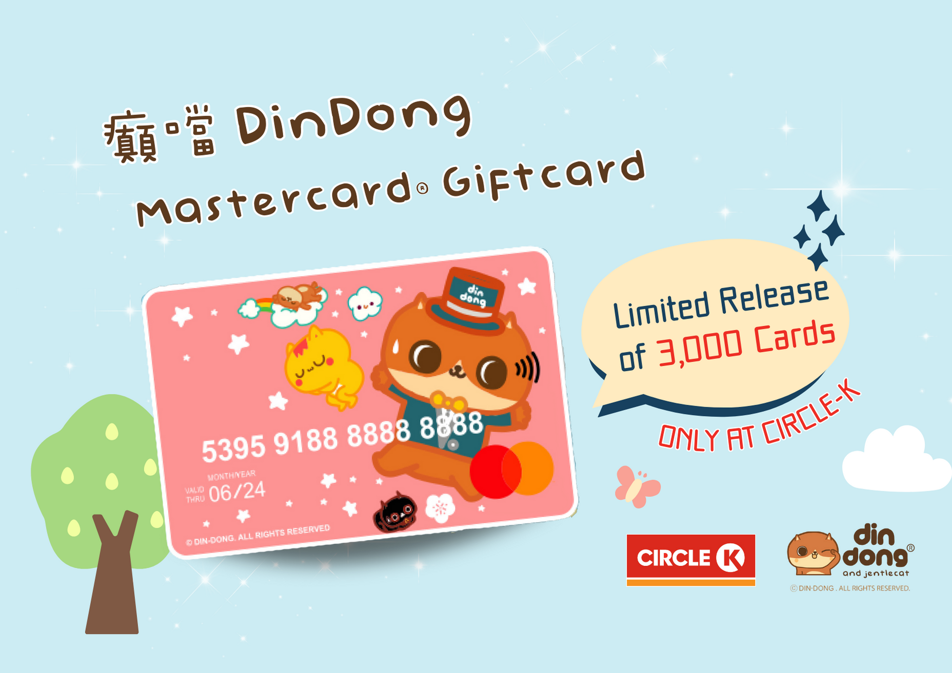 The DinDong Mastercard® gift card is now available in all Circle K stores in Hong Kong, with a limited release of 3,000 cards. As quantities in each store are limited, the product is sold on a first-come, first-served basis.